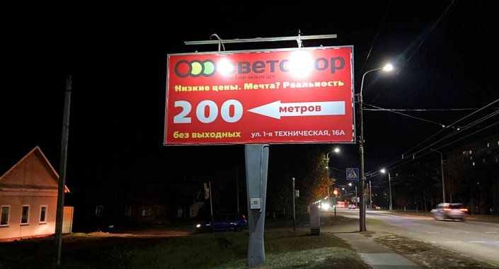 Тип Билборд Размер, м 6х3 Подсветка Да Город Гомель Адрес Гомель, ул. Ильича, 255 сторона А (день) сторона B (день) сторона А (ночь) сторона B (ночь)